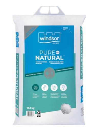 New Windsor® Pure and Natural™ is made from all-natural, high-purity salt crystals. The natural solution for softer-feeling skin and hair, less build-up on appliances, and easier cleaning, it offers 4-in-1 benefits to improve your water quality.